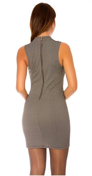 Magnifique petite robe sans manches noire et blanche effet très chic, col cheminé et fermeture zip au dos.Taille S 34-36